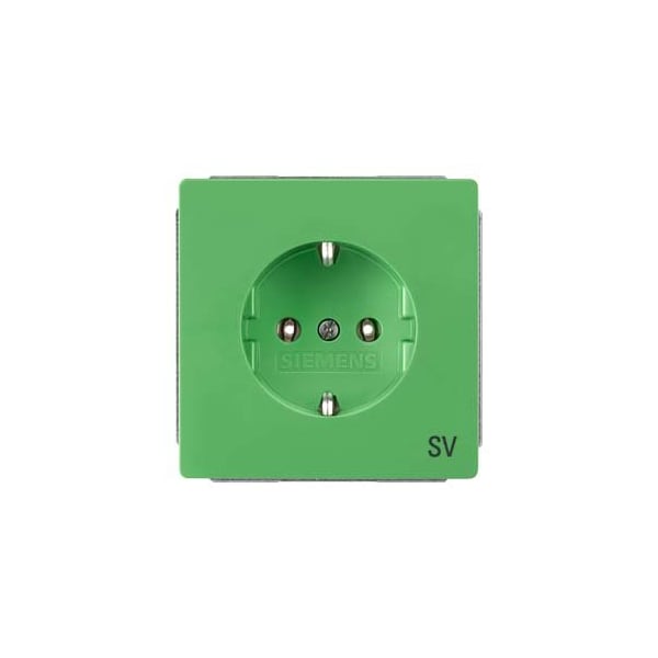 DELTA style, green SCHUKO socket outlet 10/16 A, 250V with labeling field with increased touch protection cover plate 68 x 68 mm