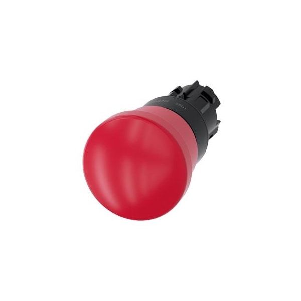 EMERGENCY STOP mushroom pushbutton, 22 mm, round, plastic, red, 40 mm, positive latching, acc. to EN ISO 13850, pull-to-unlatch mechanism, with laser labeling, upper case and lower case, always upper case at the beginning of the word