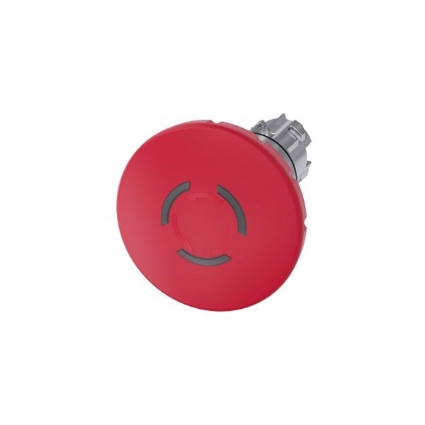 EMERGENCY STOP mushroom pushbutton, illuminable, 22 mm, round, metal, shiny, red, 60 mm, positive latching, acc. to EN ISO 13850, rotate-to-unlatch, with laser labeling, symbol number according to ISO 7000 or IEC 60417