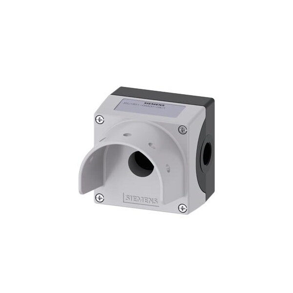 Enclosure for command devices, 22 mm, round, enclosure material metal, enclosure top part gray, with protective collar, rotated by 90°, for 5 padlocks for horizontal installation, and mushroom diameter 60 mm, 1 control point, without equipment, floor mounting, left and right each 1xM20, customer-specific selection with SIRIUS ACT configurator CIN