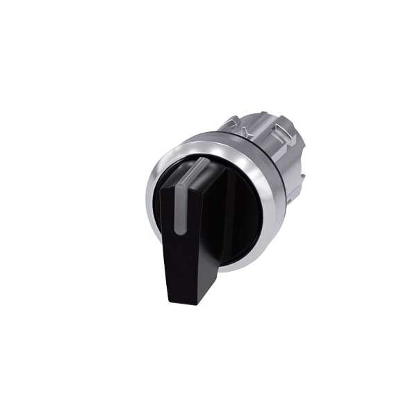 Illuminable selector switch, 22 mm, round, metal shiny, black, Selector switch short, 3 switch positions I-O-II, latching, actuating angle 2x45°, 10:30h/12h/13:30h