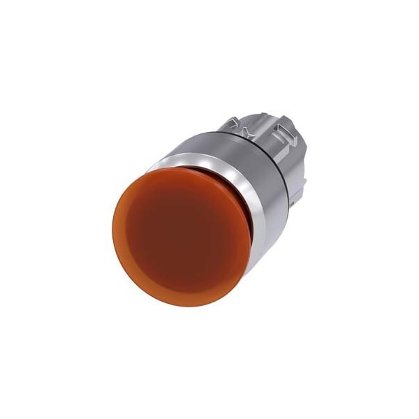Illuminated mushroom pushbutton, 22 mm, round, metal, shiny, amber, 30 mm, latching, pull-to-unlatch mechanism, with laser labeling, lower case