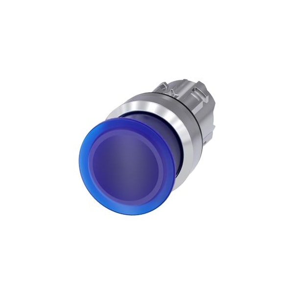 Illuminated mushroom pushbutton, 22 mm, round, metal, shiny, blue, 30