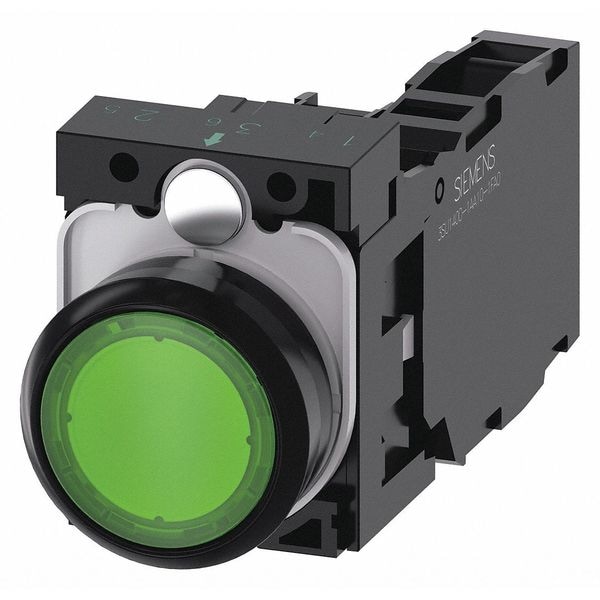Illuminated Push Button, 22 mm, Momentary Action, Flush Button Type of Operator, Head Material Plastic, Contact Form 1NO/1NC, Bezel Plastic, Color Green, Contact Rating 10A @ 600V AC, 5A @ 600V DC, NEMA Contact Rating Designation A600/R300, Number of Operators 1, NEMA Rating 1, 12, 2, 3, 3R, 4, 4X, IP Rating IP66, IP67, IP69, IP69K, Legend Not Applicable, Standards CAS, REACH, WEEE (2012/19/EU), Terminal Connection Screw