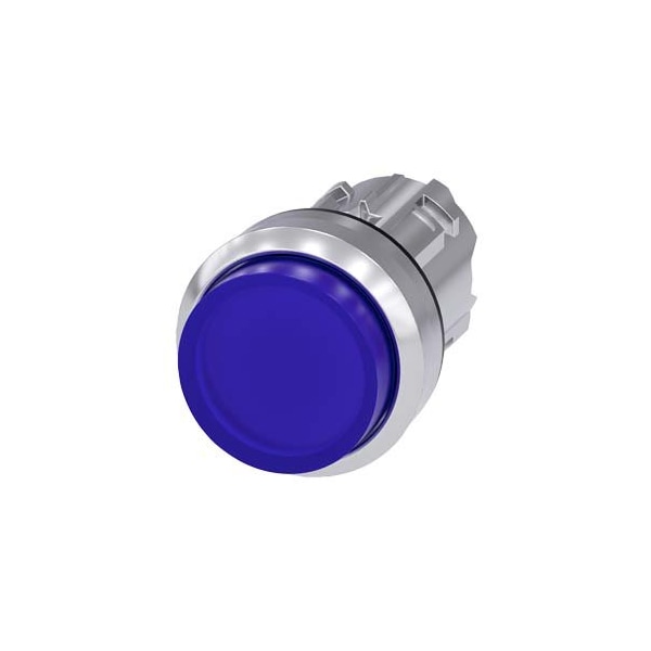 Illuminated pushbutton, 22 mm, round, metal, shiny, blue, pushbutton, raised, momentary contact type, with laser labeling, inscription or symbol Customer-specific selection with SIRIUS ACT configurator CIN
