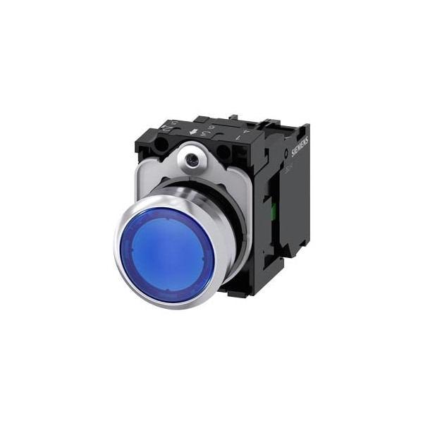 Illuminated pushbutton, 22 mm, round, metal, shiny, blue, pushbutton