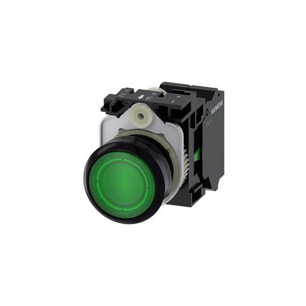 Illuminated pushbutton, 22 mm, round, plastic, green, pushbutton