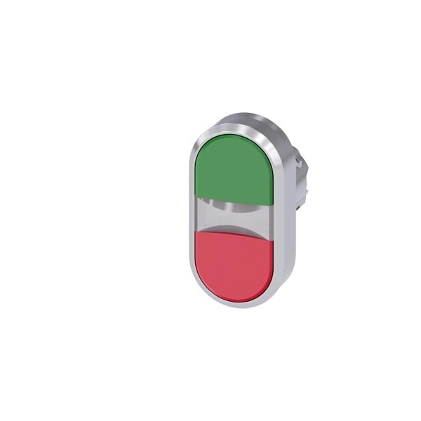 Illuminated twin pushbutton, 22 mm, round, metal, shiny, green, red, pushbuttons, flat, with laser labeling, inscription or symbol Customer-specific selection with SIRIUS ACT configurator CIN