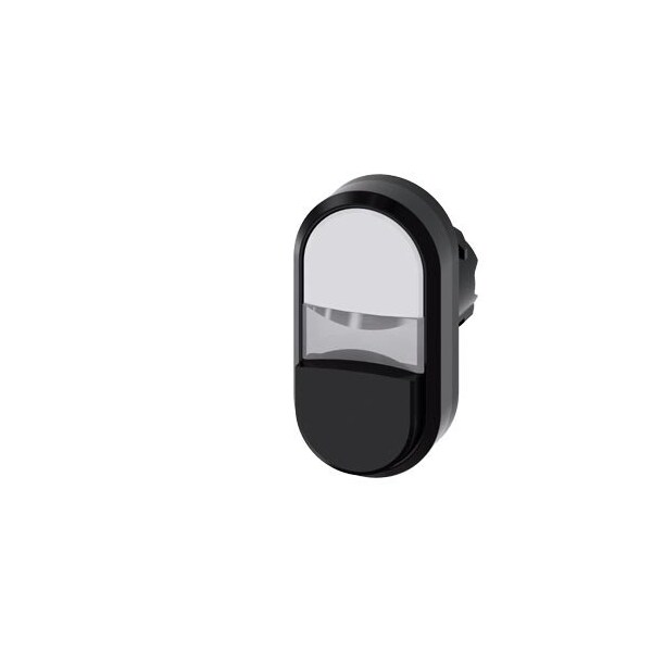 Illuminated twin pushbutton, 22 mm, round, plastic, white, black, pushbuttons, flat and raised