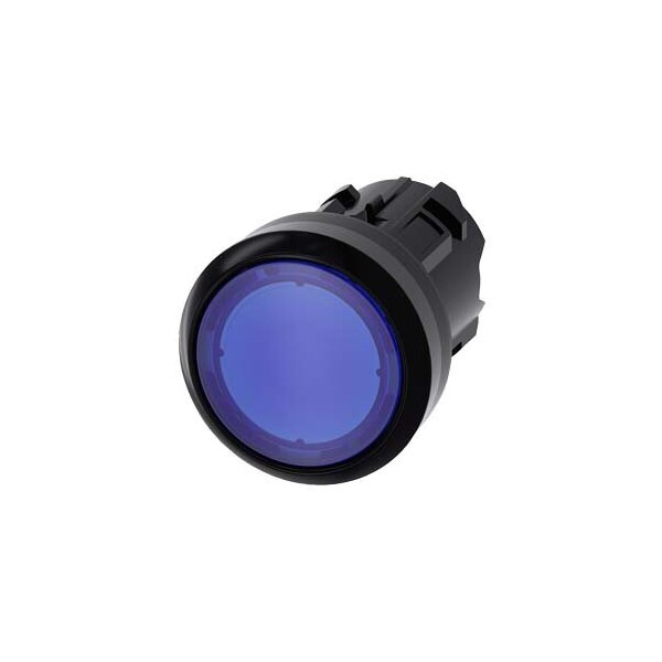 Indicator light in illuminated pushbutton design, 22 mm, round, plastic, blue, with laser labeling, upper case