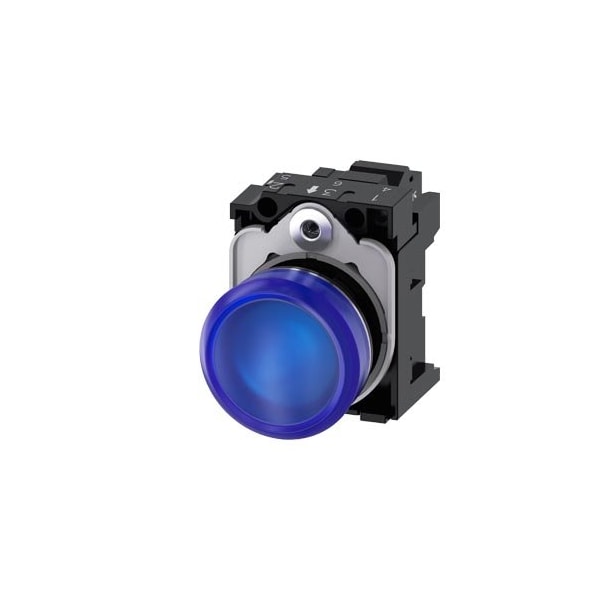 Indicator lights, 22 mm, round, metal, shiny, blue, lens, smooth, with holder, LED module with integrated LED 24 V AC/DC, Spring-type terminal