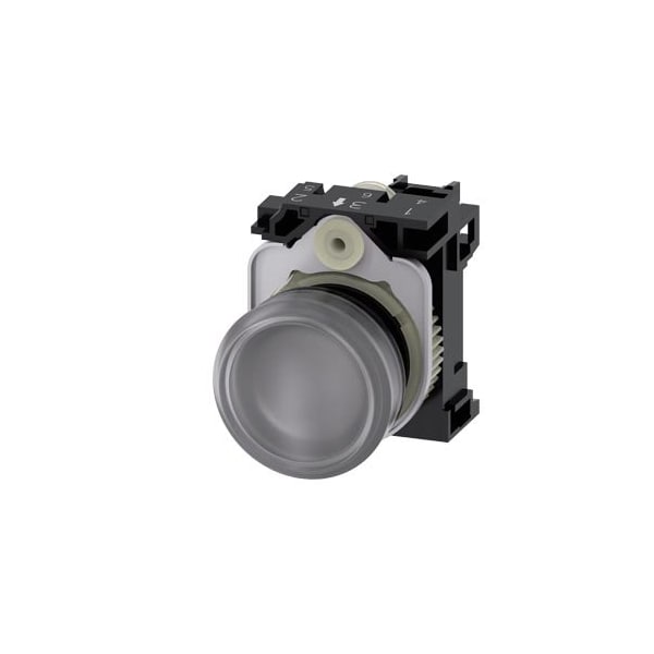 Indicator lights, 22 mm, round, plastic, clear, lens, smooth, with holder, LED module with integrated LED 110 V AC, screw terminal