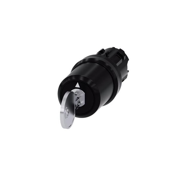 keyswitch Siemens, B, 22 mm, round, plastic, lock number S1, with 2 keys, 3 switch positions IOII, momentary contact type, actuating angle 2x45°, 10:30h/12h/13:30h, key removal O