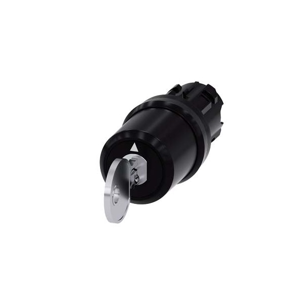 keyswitch Siemens, C, 22 mm, round, plastic, special lock, with 2 keys, 3 switch positions I-O-II, latching, actuating angle 2x45°, 10:30h/12h/13:30h, key removal I+II, customer-specific selection with SIRIUS ACT configurator CIN