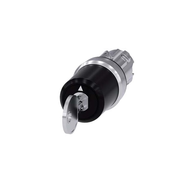 keyswitch Siemens, C, 22 mm, round, metal, shiny, lock number SSG10, with 2 keys, 3 switch positions I-O-II, latching, actuating angle 2x45°, 10:30h/12h/13:30h, key removal I+II