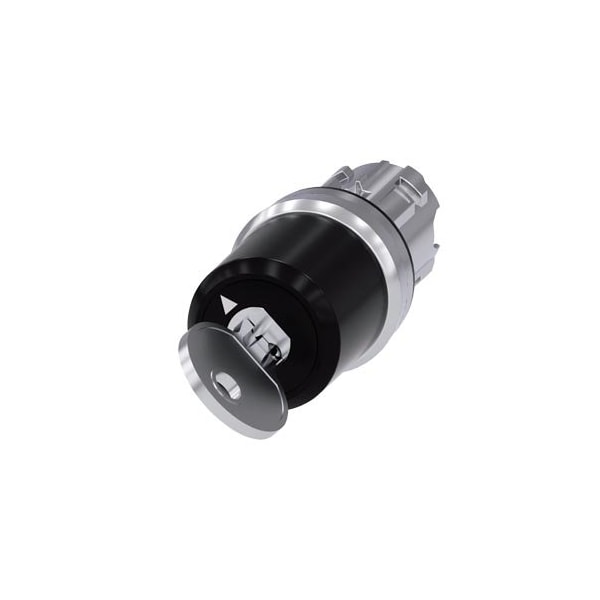 keyswitch Siemens, C with key monitoring, 22 mm, round, metal shiny, lock number SSG10 with 2 keys, 2 switch positions O-I, latching, actuating angle 90°, 10:30h/13:30h, key removal/ejection in O