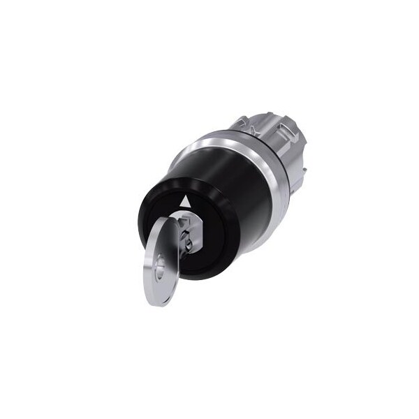 keyswitch Siemens, C with key monitoring, 22 mm, round, metal shiny, lock number SSG10 with 2 keys, 3 switch positions I-O-II, latching, actuating angle 2x45°, 10:30h/12h/13:30h, key removal/ejection in O