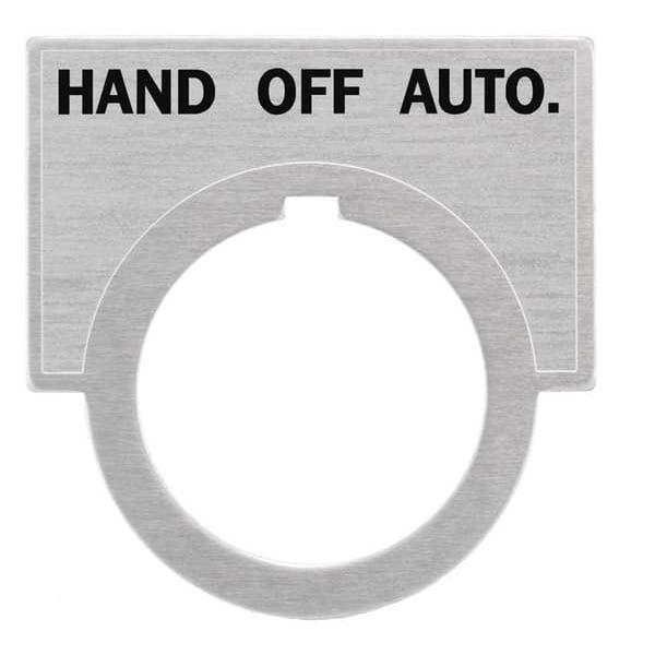 Legend Plate, Half-Round, Legend Hand-Off-Auto, For Use With 30mm Pushbuttons, Class 51 and Class 52 Pilot Device, Legend/Background Color Brushed Aluminum, Material Aluminum, Height 1.44 in, Width 2 in