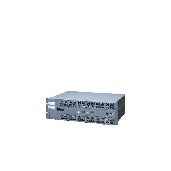 SCALANCE XR552-12M, managed IE switch, 19 rack, 4x 1000/10000 Mbit/s SFP+, 12x 100/1000 Mbit/s 4-port media modules, electrical, electrical PoE or optical, LED diagnostics, error signaling contact, Select/set pushbutton, PROFINET IO device, network management, integrated redundancy manager, office features RSTP, VLAN, IGMP,..., C-plug in scope of delivery Layer 3 prepared, ports in the front.