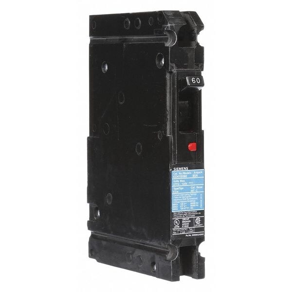Molded Case Circuit Breaker, 60 A Amps, AC Voltage Rating 120/277V AC, Max. AIR Rating 22kA at 277V AC, For Use With SB Switchboards, Sentron Panelboards, Series ED4, High Amp Trip Setting 60 A, Low Amp Trip Setting 60 A, Circuit Breaker Type Standard, Number of Poles 1, DC Voltage Rating 125V DC, Terminal Connection Load Side Lug, Trip Type Thermal Magnetic, Phase Single, Instantaneous Trip Fixed, Phase Connection Any, Frame Size 125A/ED, Circuit Breaker Mounting Style Lug In Panelboard
