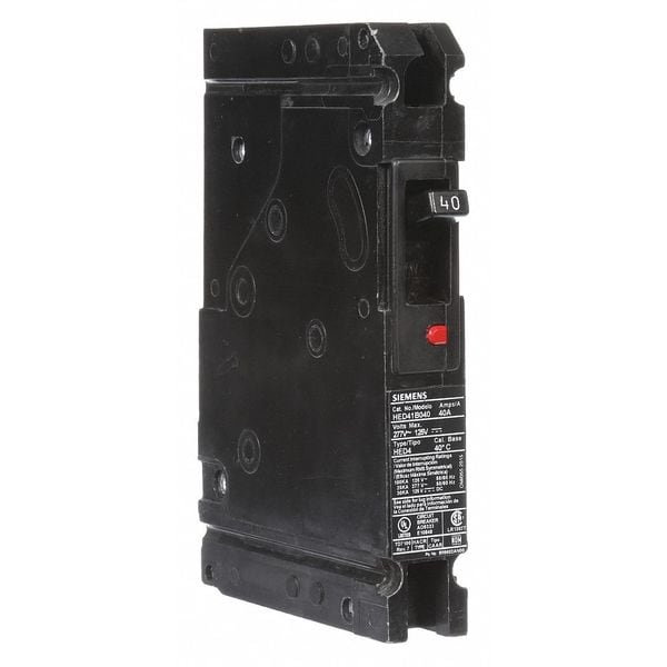 Molded Case Circuit Breaker, 40 A Amps, AC Voltage Rating 277V AC, Max. AIR Rating 25kA at 277V AC, For Use With SB Switchboards, Sentron Panelboards, Series HED4, High Amp Trip Setting 40 A, Low Amp Trip Setting 40 A, Circuit Breaker Type High Interrupting Capacity, Number of Poles 1, DC Voltage Rating 125V DC, Terminal Connection Load Side Lug, Trip Type Thermal Magnetic, Phase Single, Instantaneous Trip Fixed, Phase Connection Any, Frame Size 125A/ED
