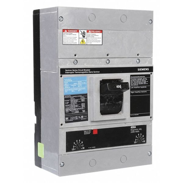 Molded Case Circuit Breaker, 400 A Amps, AC Voltage Rating 240V AC, Max. AIR Rating 65kA at 240V AC, For Use With SB Switchboards Without Lugs, Sentron Panelboards, Series JXD2-A, High Amp Trip Setting 400 A, Low Amp Trip Setting 400 A, Circuit Breaker Type Standard, Number of Poles 2, DC Voltage Rating 250V DC, Terminal Connection Lug, Trip Type Thermal Magnetic, Phase Single, Instantaneous Trip Fixed, Phase Connection Not Applicable, Frame Size 400A/JD