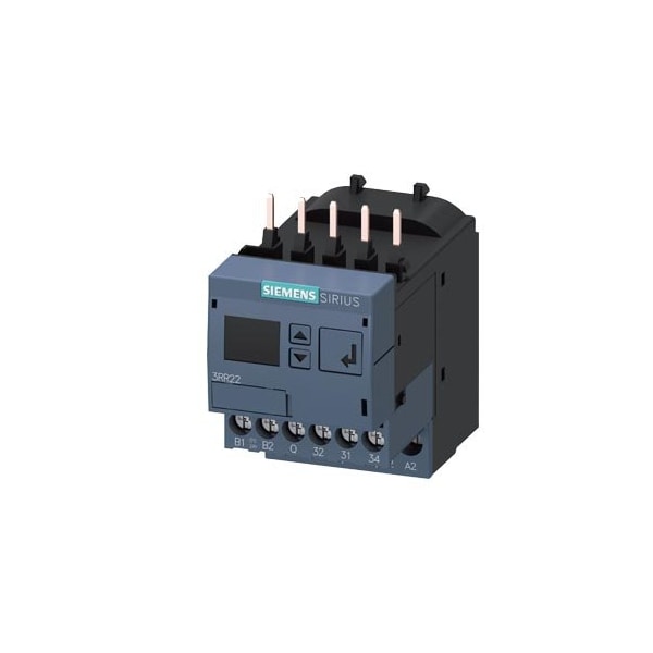 Monitoring relay, can be mounted to Contactor 3RT2, Size S00 standard, digitally adjustable Apparant/active current monitoring 1.6-16 A, 20-400 Hz, 3-phase Supply 24 V AC/DC 1 change-over contact, 1 semiconductor output for alarm and warning Monitoring for Current overshoot and undershoot Phase failure, Cable break Phase sequence Residual current Blocking current Warning and alarm thresholds with or without fault buffer ON delay 0-99 s Noise pulse suppression 0-30 s Pause after fault 0-300 min Screw connection system