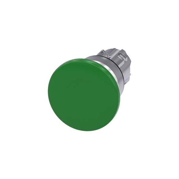 Mushroom pushbutton, 22 mm, round, metal, shiny, green, 40 mm