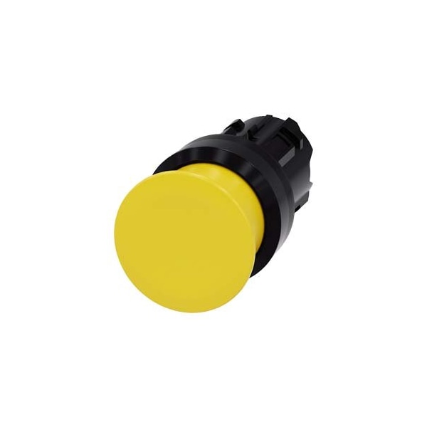 Mushroom pushbutton, 22 mm, round, plastic, yellow, 30 mm, momentary contact type, with laser labeling, inscription or symbol Customer-specific selection with SIRIUS ACT configurator CIN
