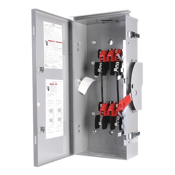 Safety Switch, Contact Form DPDT, Current Rating 100 A, Depth 8 1/2 in, Duty Standard, Enclosure Type Enclosed, Environment Indoor/Outdoor, For Fuse Class Not Applicable, Height 27 5/8 in, Horsepower @ 240V AC 40 hp, Housing Material Steel, IP Rating IP14, Maximum Enclosure Depth 27.62 in, Maximum Mounting Depth 19.36 in, Minimum Enclosure Depth 12.18 in, Minimum Mounting Depth 8 in, Mounting Style Surface Mount, NEMA Enclosure Rating 3R, Neutral Assembly Included No