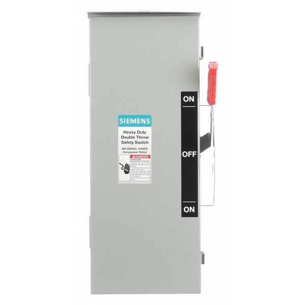 Safety Switch, Contact Form 3PDT, Current Rating 30 A, Depth 8 1/2 in, Duty Heavy Duty, Enclosure Type Enclosed, Environment Indoor/Outdoor, For Fuse Class Not Applicable, Height 25 in, Horsepower @ 600V AC 30 hp, Housing Material Steel, IP Rating IP14, Maximum Enclosure Depth 24.5 in, Maximum Mounting Depth 19 in, Minimum Enclosure Depth 9.53 in, Minimum Mounting Depth 6.75 in, Mounting Style Surface Mount, NEMA Enclosure Rating 3R, Number of Mounting Holes 3