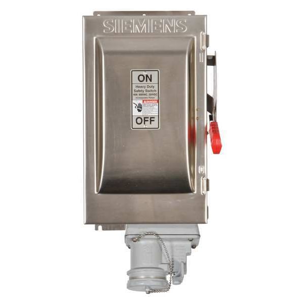 Safety Switch, Contact Form 3PST, Current Rating 30 A, Depth 8 1/2 in, Duty Heavy Duty, Enclosure Type Enclosed, Environment Indoor/Outdoor, Features Crouse-Hinds Arktite(R) Compatible Receptacle, For Fuse Class Not Applicable, Height 12 1/4 in, Horsepower @ 600V AC 7 1/2 hp, Housing Material 304 Stainless Steel, Includes Interlocked Receptacle Yes, IP Rating IP65, Mounting Style Surface Mount, NEMA Enclosure Rating 4, 4X