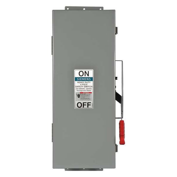 Safety Switch, Contact Form 4PST, Current Rating 30 A, Depth 12 1/8 in, Duty Heavy Duty, Enclosure Type Enclosed, Environment Indoor, For Fuse Class Not Applicable, Height 25 in, Horsepower @ 600V AC 30 hp, Housing Material Steel, IP Rating Not Rated, Mounting Style Surface Mount, NEMA Enclosure Rating 12