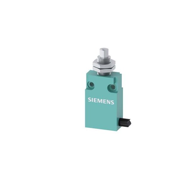 Position switch in compact design 30 mm wide with connection cable 2 m Snap-action contacts 1 NO+1 NC Rounded plunger with central mounting