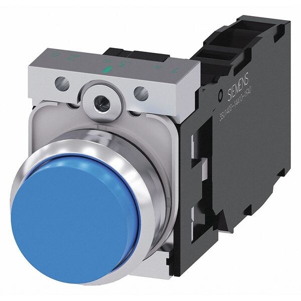 Extended Push Button Operator, 22 mm, Momentary Action, Extended Button Type of Operator, Head Material Plastic, Contact Form 1NO/1NC, Bezel Metal, Color Blue, Contact Rating 10A @ 600V AC, 1A @ 600V DC, NEMA Contact Rating Designation A600/R300, Number of Operators 1, NEMA Rating 1, 12, 2, 3, 3R, 4, 4X, IP Rating IP66, IP67, IP69, IP69K, Legend Not Applicable, Standards REACH, WEEE (2012/19/EU), Terminal Connection Screw