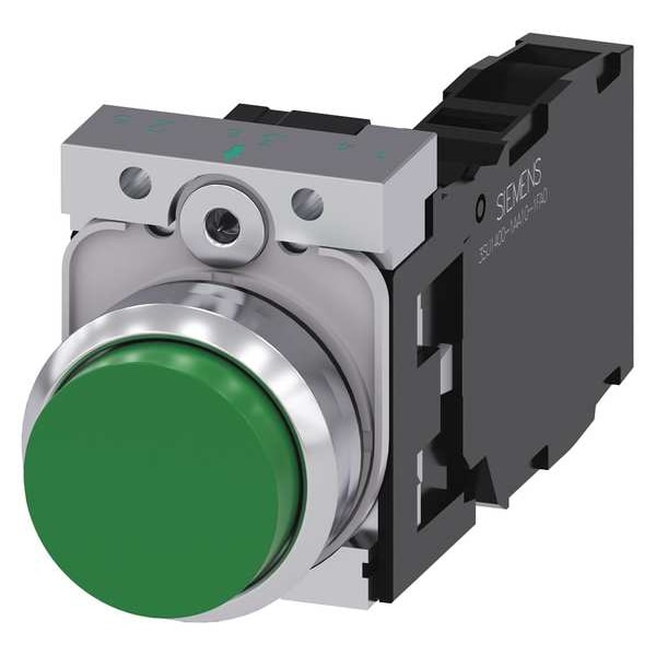 Extended Push Button Operator, 22 mm, Momentary Action, Extended Button Type of Operator, Head Material Plastic, Contact Form 1NO/1NC, Bezel Metal, Color Green, Contact Rating 10A @ 600V AC, 1A @ 600V DC, NEMA Contact Rating Designation A600/R300, Number of Operators 1, NEMA Rating 1, 12, 2, 3, 3R, 4, 4X, IP Rating IP66, IP67, IP69, IP69K, Legend Not Applicable, Standards REACH, WEEE (2012/19/EU), Terminal Connection Screw