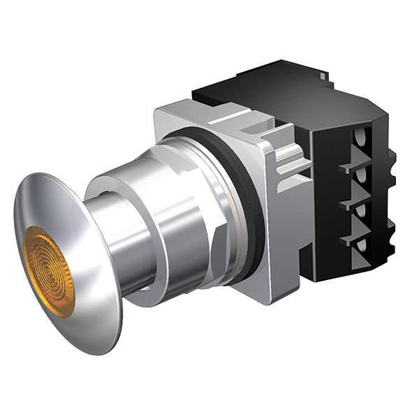 Mushroom Head Push Button, 30 mm, Maintained Action, 44mm Mushroom Head Type of Operator, Head Material Metal, Contact Form 1NO/1NC, Bezel Chrome Plated Zinc Die Cast, Color Amber, Contact Rating 10A @ 600V AC, NEMA Contact Rating Designation A600/P600, Number of Operators 1, NEMA Rating 1, 12, 13, 3, 3R, 4, 4X, IP Rating IP20, IP66, Legend Not Applicable, Standards CSA, REACH, UL Listed, Terminal Connection Screw