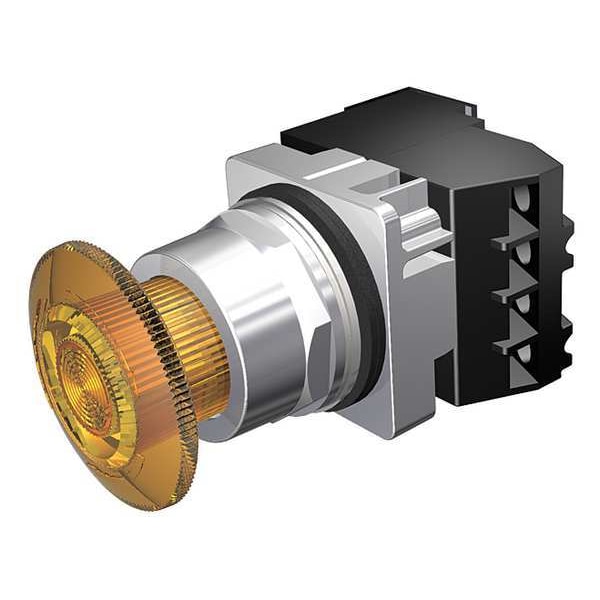 Mushroom Head Push Button, 30 mm, Maintained Action, 45mm Mushroom Head Type of Operator, Head Material Plastic, Contact Form 1NO/1NC, Bezel Chrome Plated Zinc Die Cast, Color Amber, Contact Rating 10A @ 600V AC, NEMA Contact Rating Designation A600/P600, Number of Operators 1, NEMA Rating 1, 12, 13, 3, 3R, 4, 4X, IP Rating IP20, IP66, Legend Not Applicable, Standards CSA, REACH, UL Listed, Terminal Connection Screw