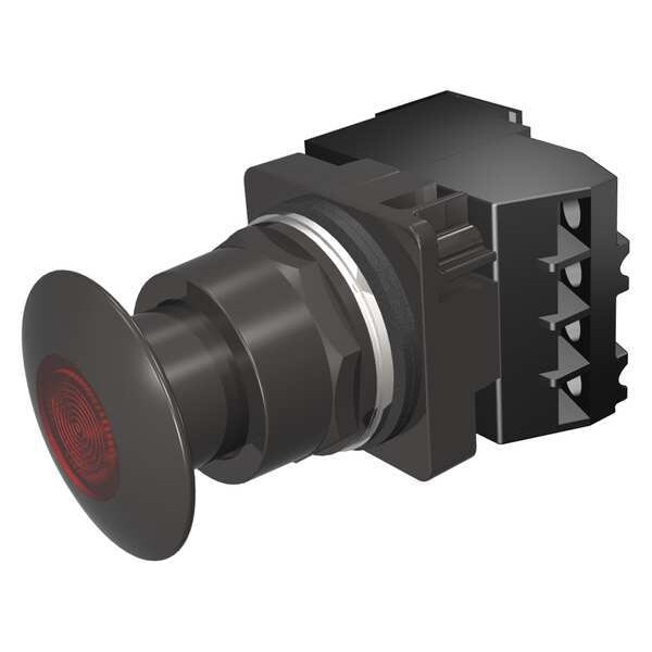 Mushroom Head Push Button, 30 mm, Maintained Action, 44mm Mushroom Head Type of Operator, Head Material Metal, Contact Form 1NO/1NC, Bezel Black Epoxy Coated Zinc Die Cast, Color Red, Contact Rating 10A @ 600V AC, NEMA Contact Rating Designation A600/P600, Number of Operators 1, NEMA Rating 1, 12, 13, 3, 3R, 4, 4X, IP Rating IP10, IP11, IP14, IP52, IP54, IP56, IP66, Legend Not Applicable, Standards CSA, REACH, UL Listed, Terminal Connection Pressure Plate