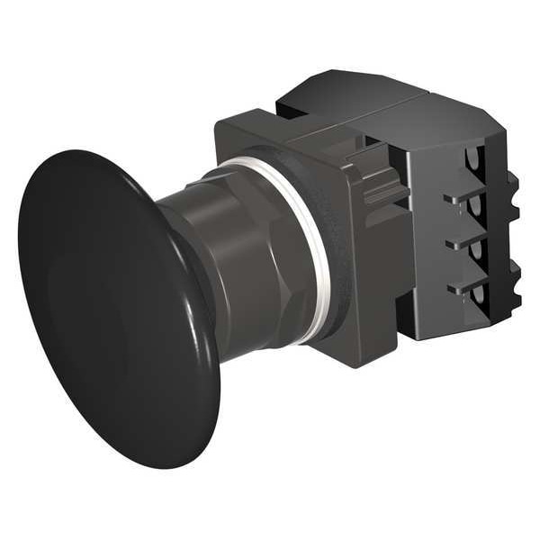 Mushroom Head Push Button, 30 mm, Momentary Action, 63mm Mushroom Head Type of Operator, Head Material Plastic, Contact Form 2NC, Bezel Epoxy Coated Zinc Die Cast, Color Black, Contact Rating 10A @ 600V AC, NEMA Contact Rating Designation A600/P600, Number of Operators 1, NEMA Rating 1, 12, 13, 3, 3R, 4, IP Rating IP10, IP11, IP14, IP52, IP54, IP56, IP66, Legend Not Applicable, Standards CSA, REACH, UL Listed, Terminal Connection Pressure Plate
