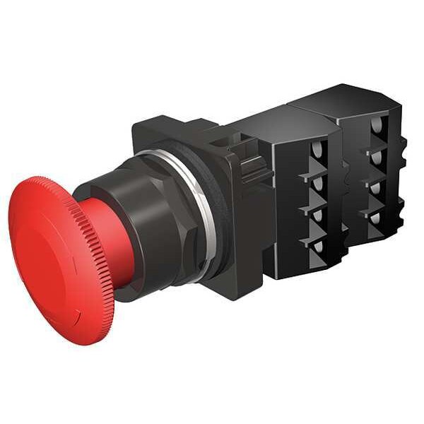 Mushroom Head Push Button, 30 mm, Maintained Action, 45mm Mushroom Head Type of Operator, Head Material Plastic, Contact Form 2NC, Bezel Corrosive Resistant Epoxy Coated Zinc Die Cast, Color Red, Contact Rating 10A @ 600V AC, NEMA Contact Rating Designation A600/P600, Number of Operators 1, NEMA Rating 1, 12, 13, 3, 4, 4X, IP Rating IP10, IP11, IP14, IP52, IP54, IP56, IP66, Legend Not Applicable, Standards CSA, REACH, UL Listed, Terminal Connection Pressure Plate