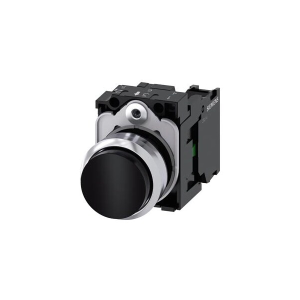 Pushbutton, 22 mm, round, metal, shiny, black, pushbutton