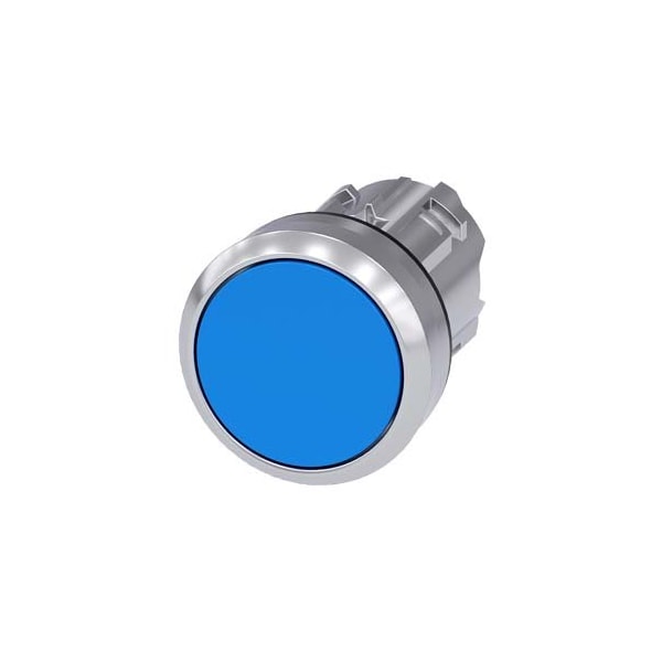 Pushbutton, 22 mm, round, metal, shiny, blue, pushbutton, flat