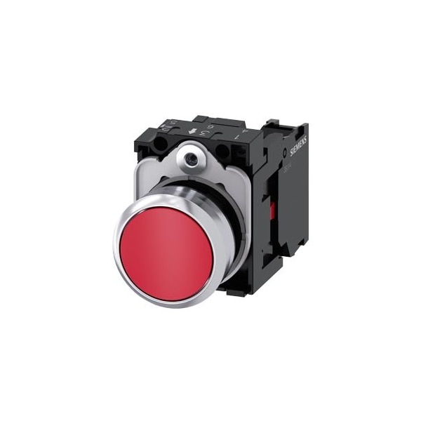 Pushbutton, 22 mm, round, metal, shiny, red, pushbutton, flat