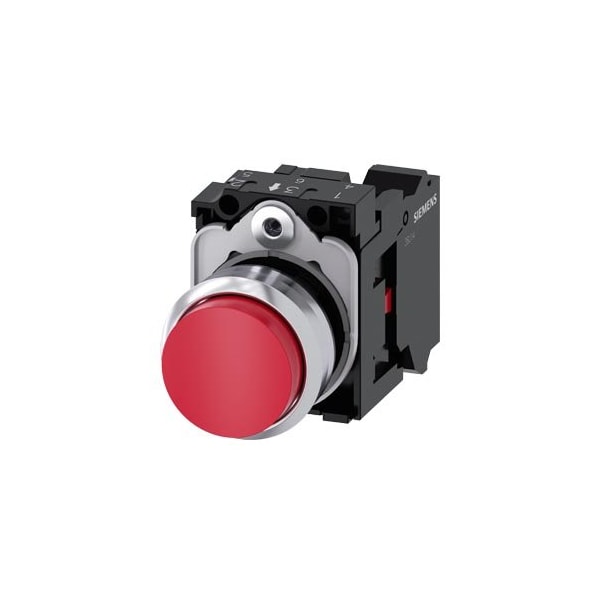 Pushbutton, 22 mm, round, metal, shiny, red, pushbutton, raised