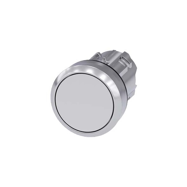 Pushbutton, 22 mm, round, metal, shiny, white, pushbutton, flat, latching, Push-to-release mechanism, with laser labeling, inscription or symbol Customer-specific selection with SIRIUS ACT configurator CIN