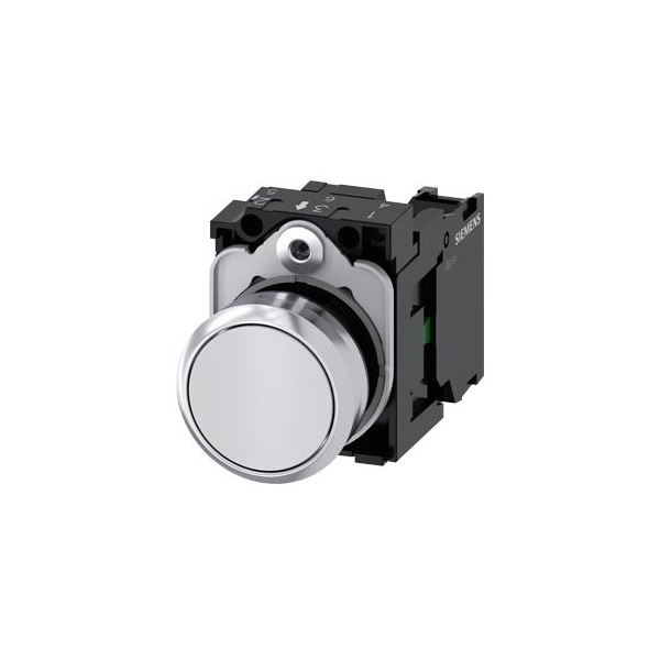 Pushbutton, 22 mm, round, metal, shiny, white, pushbutton, flat