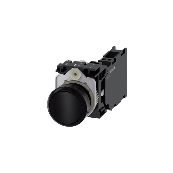 Pushbutton, 22 mm, round, plastic, black, pushbutton, flat, momentary contact type, with holder 1 NO+1 NC, spring-type terminal