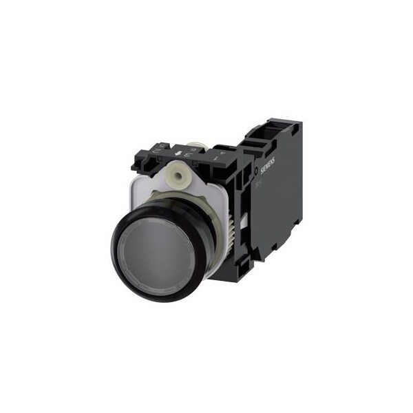 Pushbutton, 22 mm, round, plastic, clear, pushbutton, flat, momentary contact type, with holder 1 NO+1 NC, screw terminal