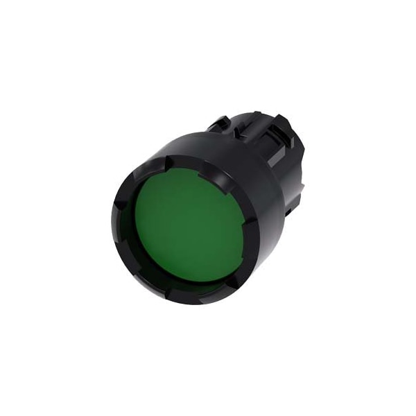 Pushbutton, 22 mm, round, plastic, green, Front ring, raised